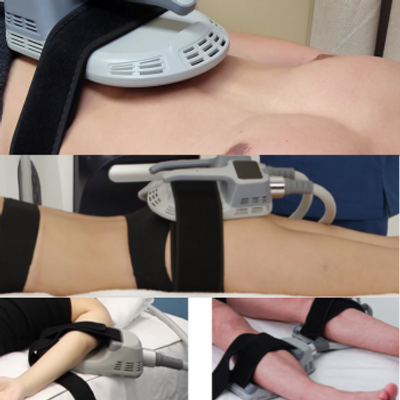 The applicator administers focused electromagnetic stimulation to targeted muscle groups. The level of intensity will begin at 50%, and gradually increase according to your maximum tolerance for 30 minutes per muscle group.